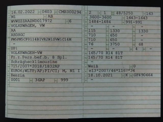 Voertuiggegevens van deze Volkswagen up!